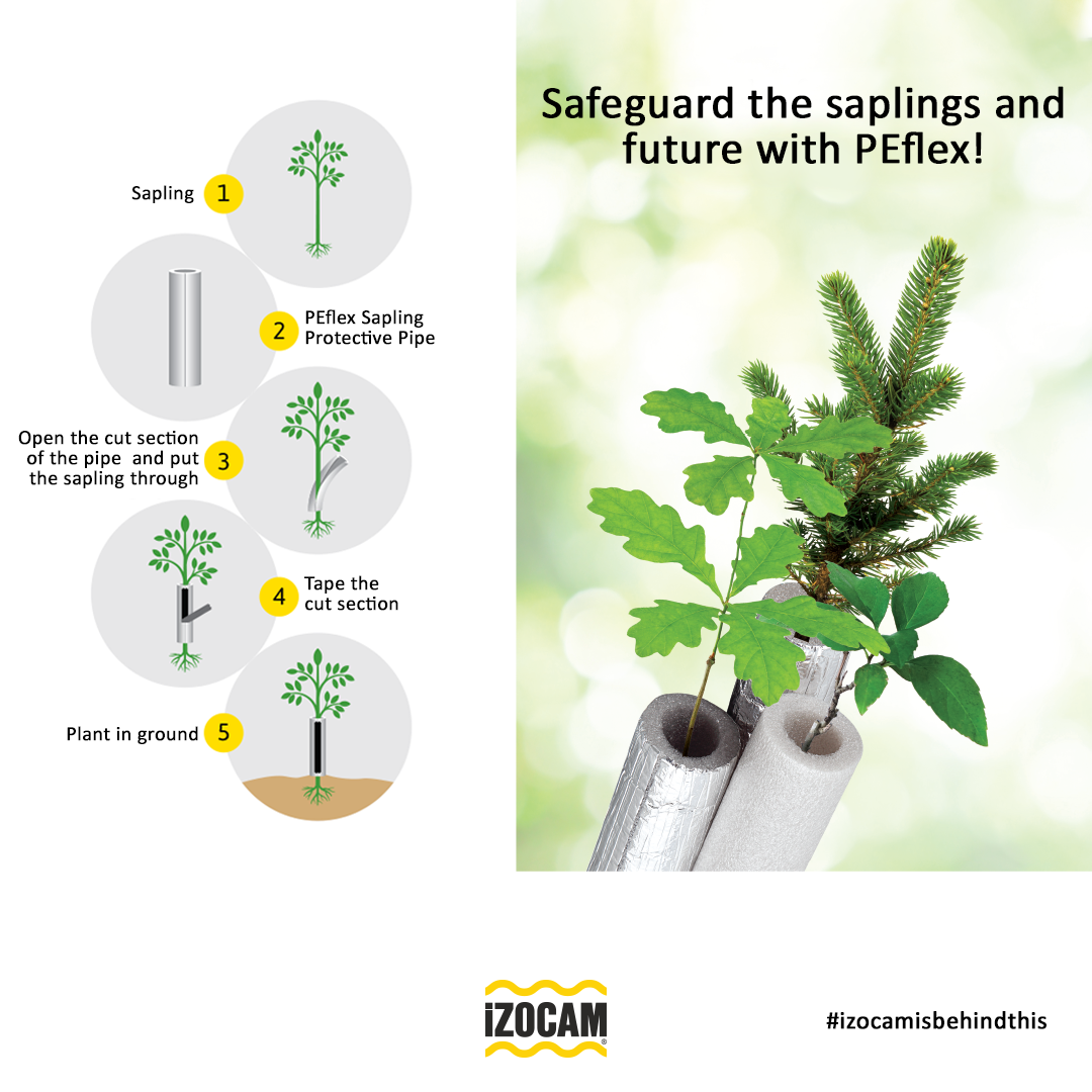 Developed by the prominent company of insulation sector, Izocam, PEflex Sapling Protector is the most important helper of producers during this period when sapling producers have started taking, in all of Turkey, especially in Mediterranean, Central Anatolia, and Black Sea regions. Izocam PEflex Sapling Protector, which is an product designed to protect the body of young saplings, protects the saplings against harmful and even deadly effects of herbicides and late frost during their most vulnerable young stages. This affordable body protector, which is the most important measure that can be taken in the first period in a fruit garden or during forestation, is made of environmentally friendly PE material and can be manufactured in ranges of 22-114 mm diameter and 10-30 mm thickness.