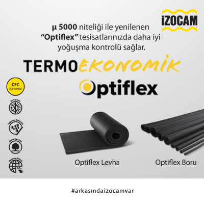 “İzocam Optiflex”, which can be used between the temperatures of -50˚C to 105˚C and which was renewed this year with its µ 5000 characteristic, provides better condensation control in installation insulation. The product does not contain CFCs and provides ease of application with its very flexible structure during application.