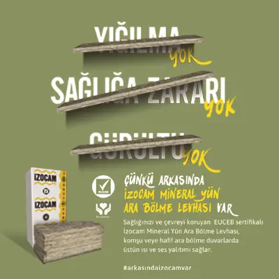 Her ihtiyaca uygun yalıtım çözümlerini uygulayıcı ile buluşturan İzocam, usta dostu Mineral Yün Ara Bölme Levhası ile duvarlarda “A” sınıfı ısı ve ses yalıtımı ile yangın güvenliği sağlıyor.