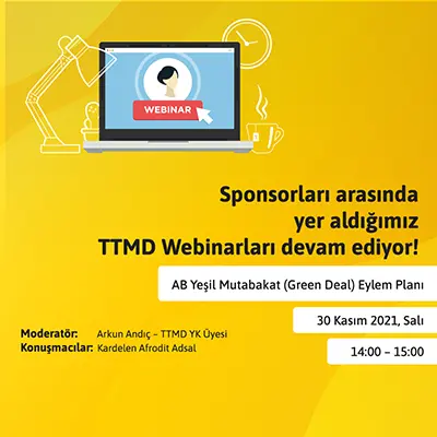 Sponsorları arasında yer aldığımız TTMD Webinarları serisi 30 Kasım 2021’de, AB Yeşil Mutabakat Eylem Planı içeriği ile devam ediyor.