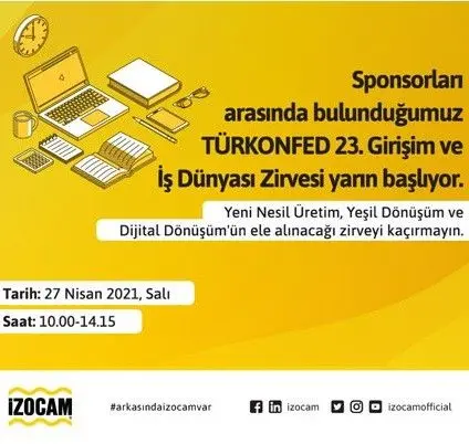 Dönüşüm Zamanı ana temasıyla 27 Nisan 2021 Salı günü, saat 10.00-14.15 arasında gerçekleştirilen TÜRKONFED 23. Girişim ve İş Dünyası Zirvesi’nin sponsorları arasında yerimizi aldık.