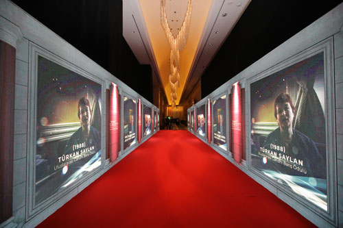 İzocam’ın 100. Yıl Cumhuriyet Resepsiyonu, detaylıca düşünülmüş zengin konseptiyle Cumhuriyet coşkusuna ev sahipliği yaptı. Resepsiyon mottosunu desteklemek ve ambiyansı yaşatmak üzere fuaye alanında 18 metre uzunluğunda bir tünel hazırlayan İzocam, çift taraflı hazırlanan tünelde mücadele döneminden askerlerin yürüdüğü zorlu yolları yansıtan görüntülere ve “Onlar o zorlu yollarda yürümeseydi, biz bugün burada olamazdık!” mesajına yer verdi. Tünel zeminini eski taş görünümü ile kaplayarak, yolun sonuna eski dönem TBMM’nin kapısını yerleştiren İzocam, katılımcıların bu yoldan yürüyerek kapıdan geçmelerini ve toplantı salonuna girişlerini sağladı. Kokteyl ve balo saatlerinde ise tünel zeminini kırmızı halı ile kaplayan firma, tünelin ekranlarında son 100 yılda Türkiye’de ilklere ve başarılara imza atmış bilim insanı, sanatçı, sporcu gibi birçok kişiye yer verdi.