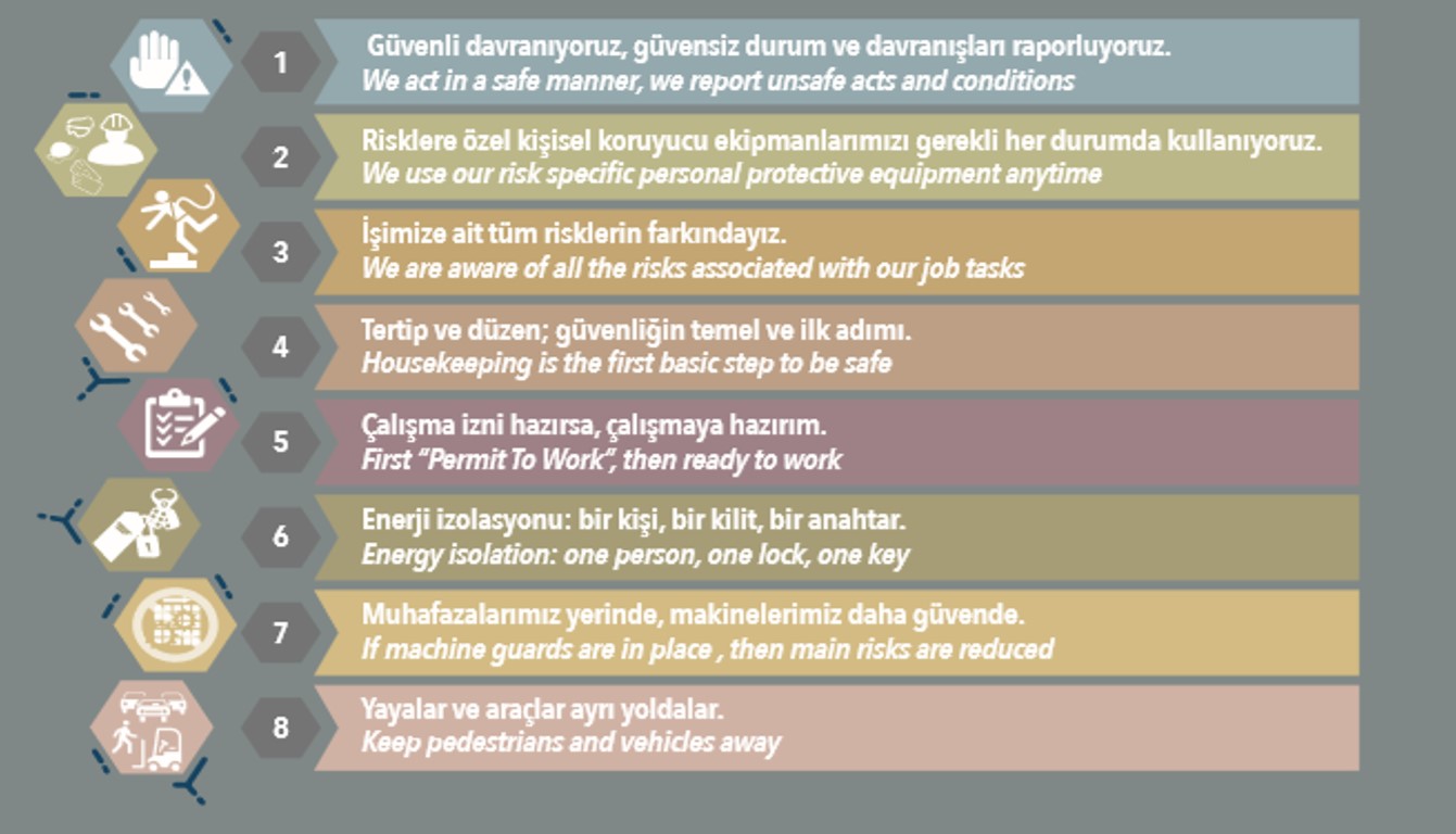 Biliyoruz ki; güvenli ve sağlıklı geçirdiğimiz her gün, güvenli ve sağlıklı bir yılın, güvenli ve sağlıklı yarınların ve hepimiz için güvenli bir kariyer ortamının temelini oluşturacaktır.